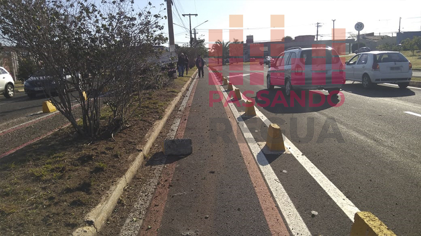 De acordo com informações, por volta das 15h30, uma caminhonete Ford/F350, branca, com carroceria, seguia pela avenida, no sentido centro/bairro, quando o seu motorista tentou uma ultrapassagem, porém devido ao estreitamento da pista, perdeu o controle, atingiu a caminhonete Fiat/Strada, branca, e invadiu a ciclovia, às margens da avenida, passou por cima de um grande “tachão” amarelo de concreto, que foi instalado pela Prefeitura de Ourinhos, como proteção aos ciclistas e parou no canteiro central, quase atingindo um poste.