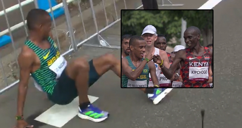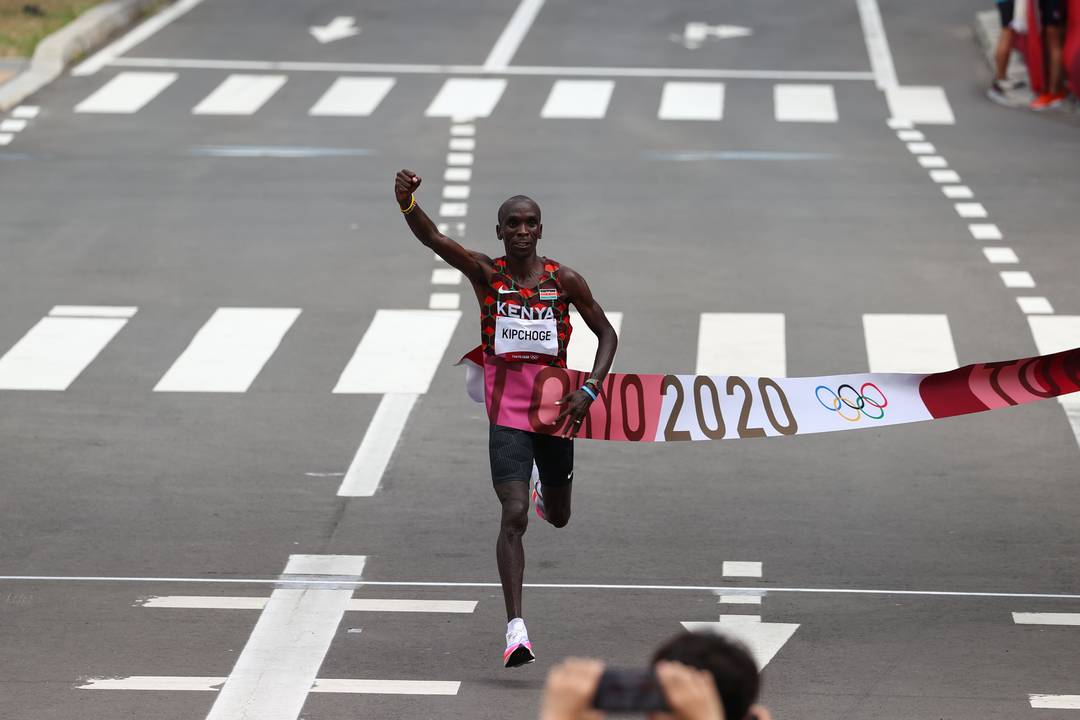 Kipchoge é recordista mundial da maratona, o único homem a correr os 42,195 km abaixo das 2 horas. Com tempo de 2:08:38, ele é BICAMPEÃO olímpico. O queniano venceu no Rio e, agora, leva a melhor também em Tóquio. A pulseira usada pelo brasileiro durante a prova tinha as cores do Brasil e também do Quênia.