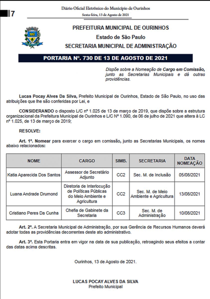 O prefeito de Ourinhos, Lucas Pocay (PSD) continua ignorando a justiça e publicou, nesta sexta-feira, 13, no Diário Oficial do Município, a renomeação de mais três comissionados, que foram exonerados no dia 28 de junho, em cumprimento de medida judicial (clique e relembre).