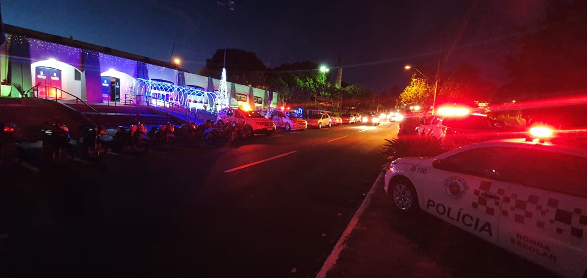 Diversas viaturas foram acionadas para formar um verdadeiro paredão de defesa aos vereadores que defenderam os projetos de aumento de Lucas Pocay (PSD)