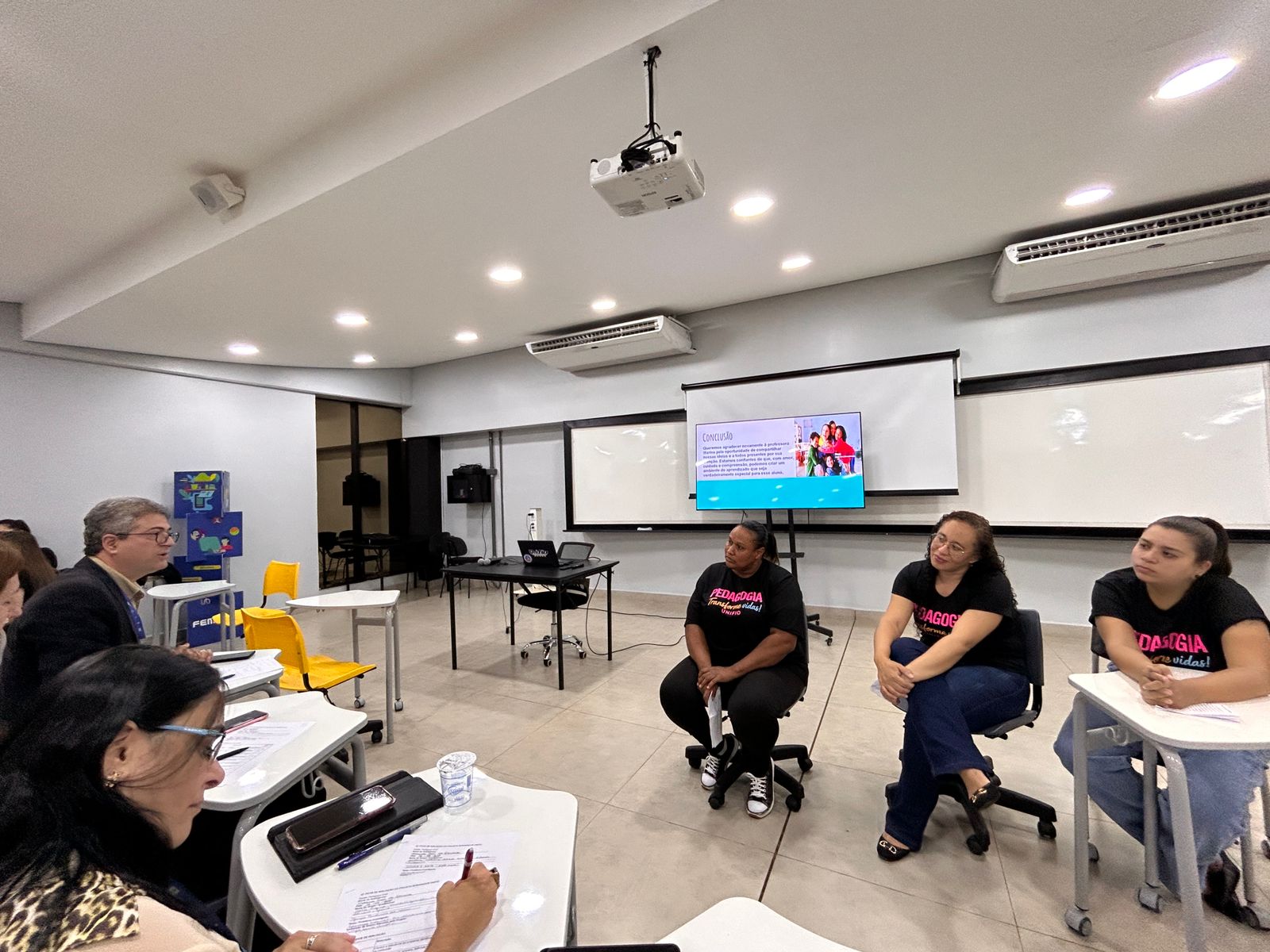 Os acadêmicos apresentaram propostas inovadoras com possibilidades de implantação e estratégias para melhoria contínua do ensino e da aprendizagem no ambiente escolar.