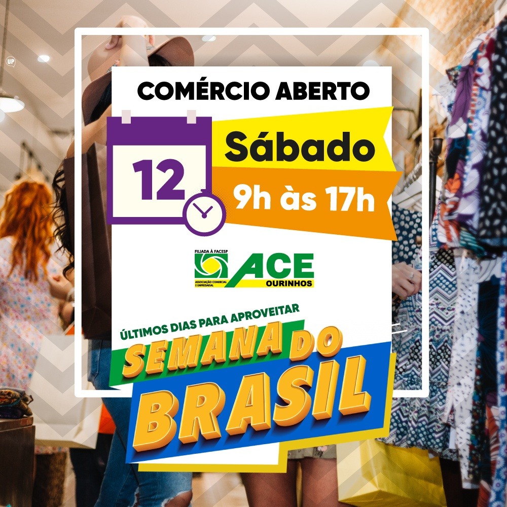 “Boa tarde amigos, a PMO atendeu mais um pedido da ACE e em sintonia com a 2º Edição da SEMANA BRASIL, que iniciou no dia 3 e vai até o dia 13/09 e autorizou a abertura neste sábado até ás 17h, a ACE já está com a equipe de marketing trabalhando na divulgação em todas as mídias sociais e nas rádios e jornais locais. Nos ajudem a divulgar”, destacou Martuchi.