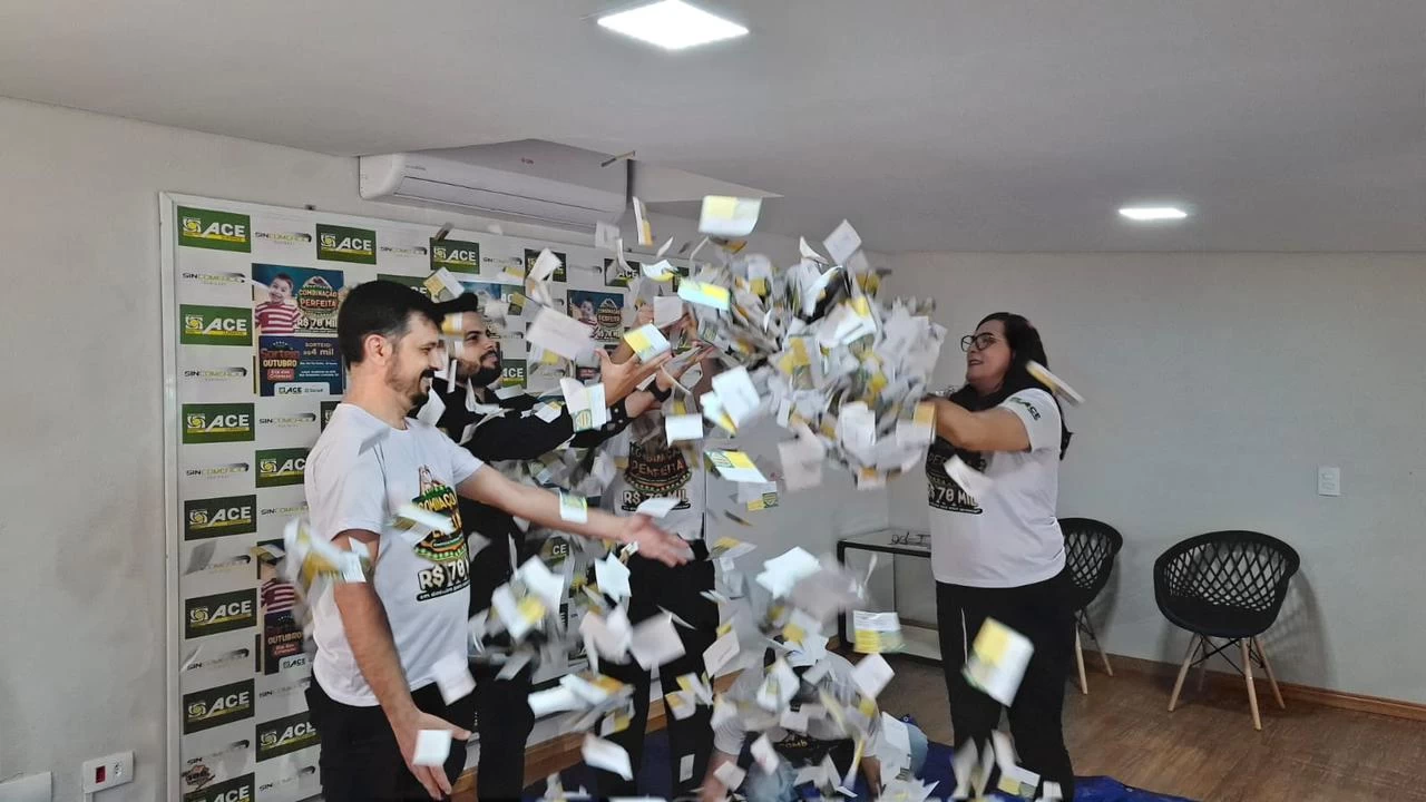 O sorteio contou com a presença da equipe da ACE e do gerente do Sicredi, Vitor Hugo da Silva.