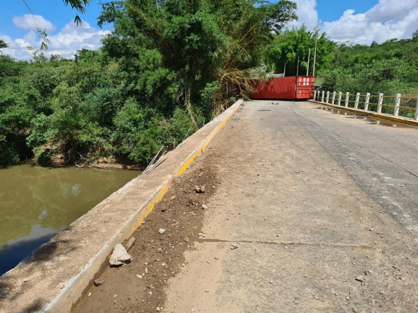 Um caminhão com um contêiner carregado com amendoim tombou no início da tarde desta terça-feira (20) na ponte do Rio do Peixe, na estrada vicinal que faz a ligação entre Tupã e Quatá (SP) (127 km de Ourinhos).