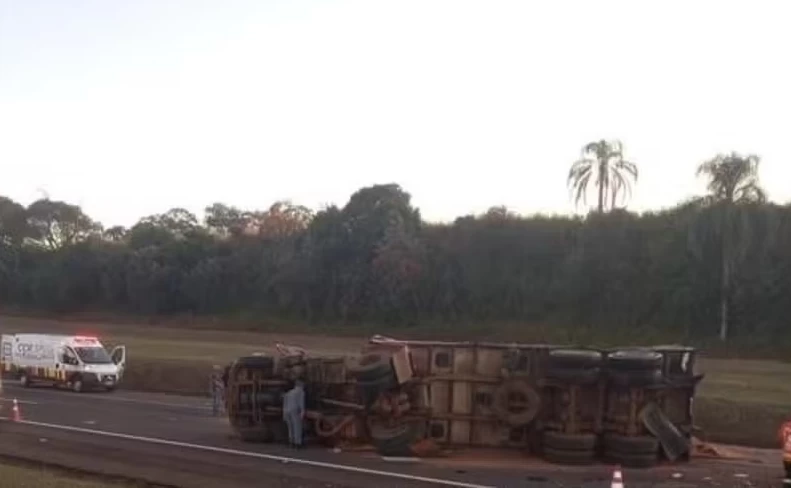 O motorista do caminhão não se atentou a uma carreta que saía do acostamento e acessava a faixa logo à frente e, sem tempo hábil para frear ou desviar, acabou batendo na traseira do veículo, que, em seguida, tombou, derramando 22 toneladas de sorgo na pista.