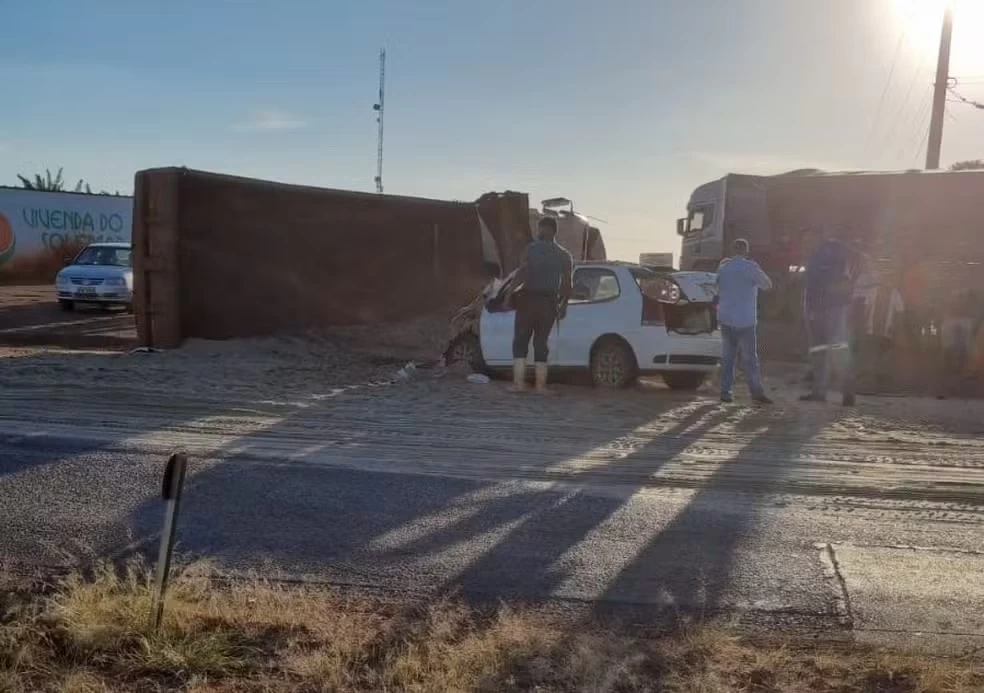 As quatro vítimas estavam em um carro que bateu em um caminhão carregado com areia. O segundo veículo tombou na pista. Não há informações sobre o estado de saúde do motorista do caminhão. As informações são do g1.