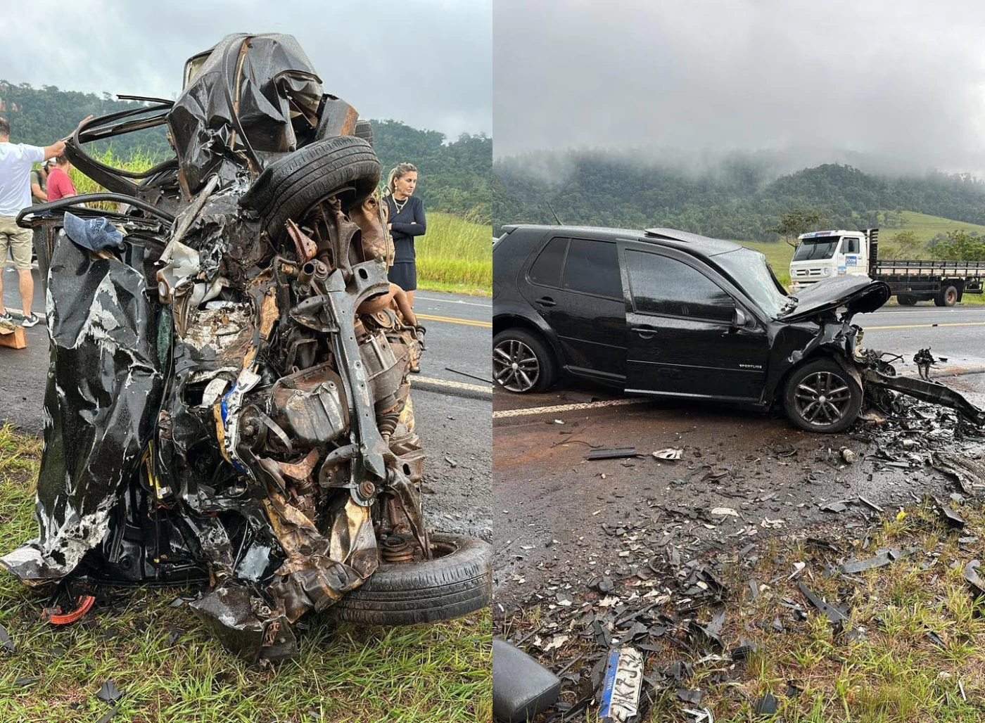 Um grave acidente envolvendo dois carros deixou quatro mortos na manhã deste sábado (10), na Rodovia Engenheiro Thomaz Magalhães (SP-287), na altura do quilômetro 22, entre os municípios de Piraju e Sarutaiá, no interior de São Paulo. A batida foi frontal, e um dos veículos ficou completamente destruído com o impacto.