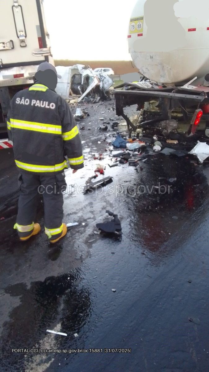 O óbito do motorista da van, cuja identidade ainda não foi divulgada oficialmente, foi confirmado no local às 6h50. Ele não resistiu aos ferimentos causados pelo impacto direto na traseira do caminhão-tanque.