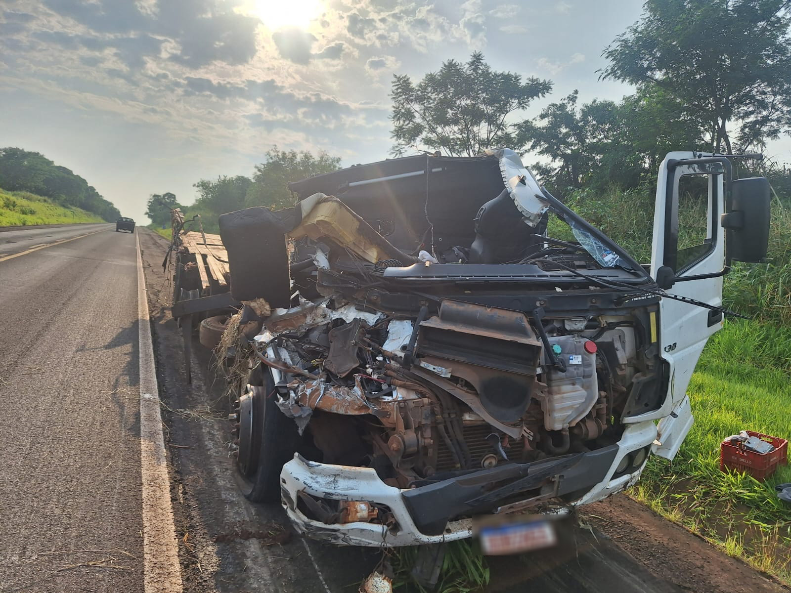 O choque foi tão intenso que ocasionou a perda total do caminhão de ração. O motorista do veículo atingido sofreu ferimentos leves devido à colisão, enquanto o condutor do caminhão que bateu na traseira não sofreu ferimentos.