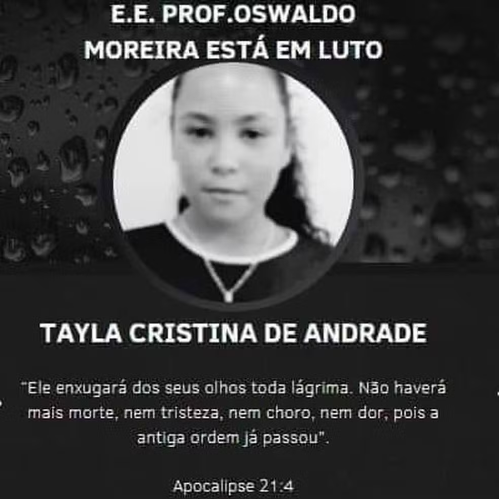 A Escola Estadual "Professor Oswaldo Moreira", onde Tayla estudava, publicou uma nota de pesar nas redes sociais: