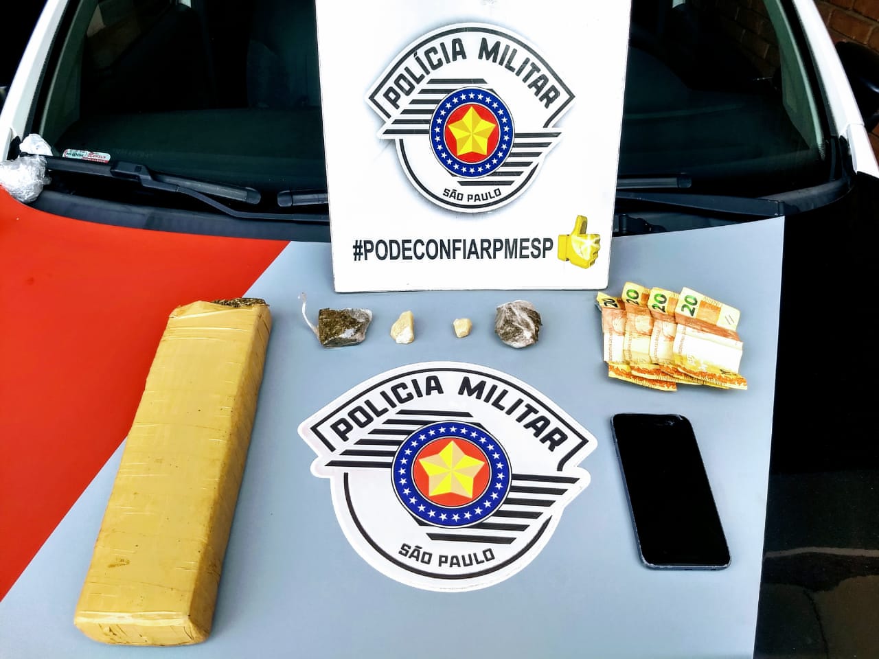 Ontem, 9, equipe de policias militares, em patrulhamento preventivo pelo Bairro Jardim São Carlos, com vistas a dois indivíduos que praticam o tráfico de drogas, ao acessar a Rua Rubens Ribeiro de Morais, a equipe visualizou um deles, que tentou evadir-se mas foi detido e localizado em seu bolso 2 pedras brutas de crack e R$80,00 reais em notas diversas, e 1 celular Samsung. Ao ser indagado disse que estava trabalhando para o seu tio, e seria o responsável pela entrega das drogas, disse ainda que na casa que morava com o tio, teria maconha escondida. Com apoio das equipes de policiais deslocaram até a residência e avistaram o tio na sala sendo detido e submetido a busca pessoal, ao realizar buscas pelo quarto localizaram 1 tijolo de maconha, enrolado em uma camiseta sobre o guarda roupa. Diante da materialidade foram conduzidos para providências cartorárias e recolhidos à Cadeia Pública de São Pedro do Turvo.