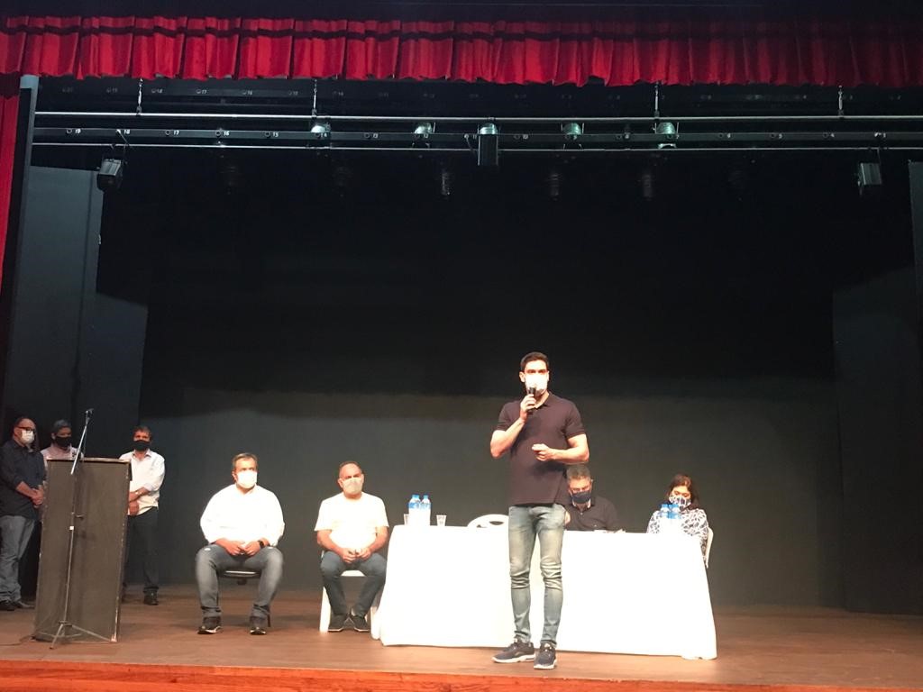 Lucas Pocay discursando no Teatro Municipal na manhã deste domingo (Foto: Arquivo Pessoal)