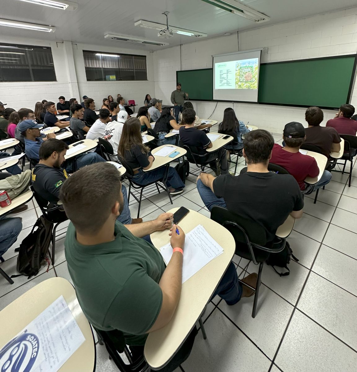 Palestra com o tema Manejo de plantas de cobertura em pré e pós cultivo da soja, ministrada por Técnico Agrícola e graduando em Agronomia Brenno Franco