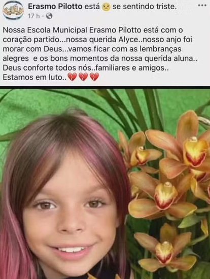 A Polícia Civil do Paraná disse nesta quarta-feira, 18, que a estudante Alyce Tesluki, de 10 anos, chegou "aparentemente bem" à escola, mas que o quadro de saúde dela se agravou rapidamente e ela morreu antes de chegar ao hospital. As informações são do g1.