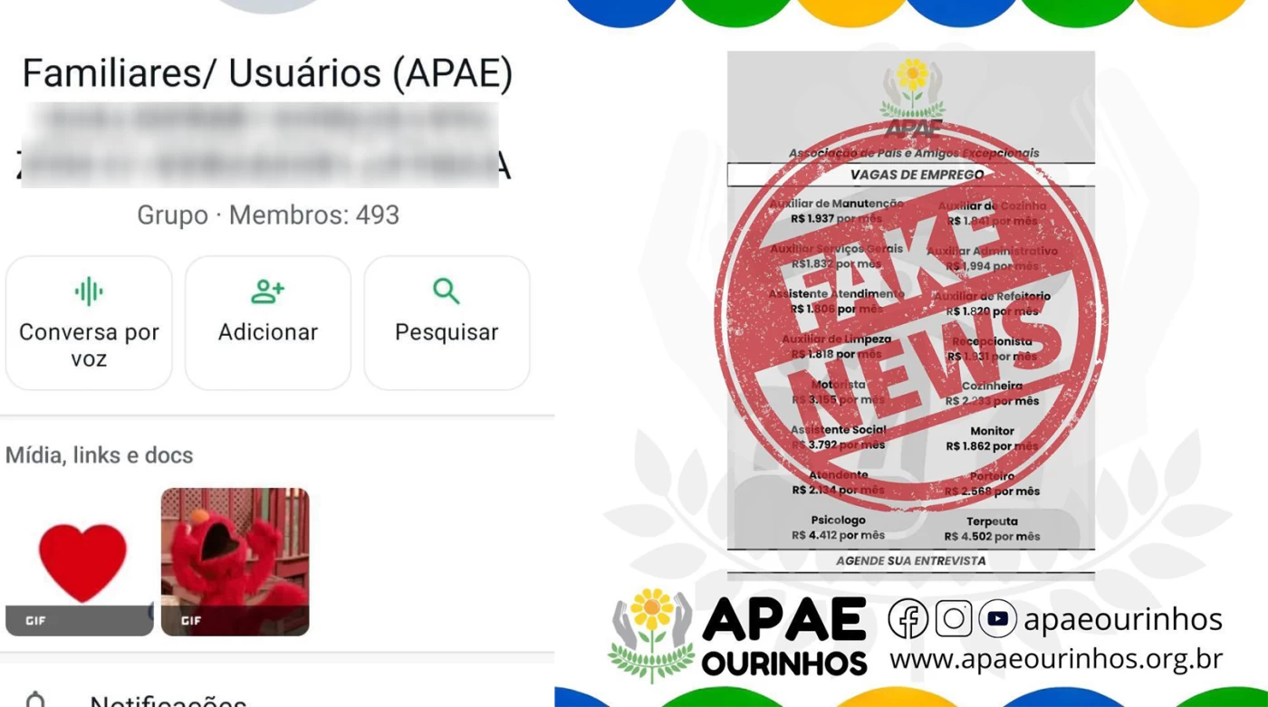 A APAE reforça que não permite o uso das informações das famílias atendidas para fins políticos e esclarece que a instituição não está realizando contratações, desmentindo informações que circulam em uma imagem divulgada recentemente. A associação sublinha que todas as campanhas, convites e eventos são divulgados exclusivamente por meio de suas mídias sociais oficiais ou por contato direto de seus profissionais com as famílias.