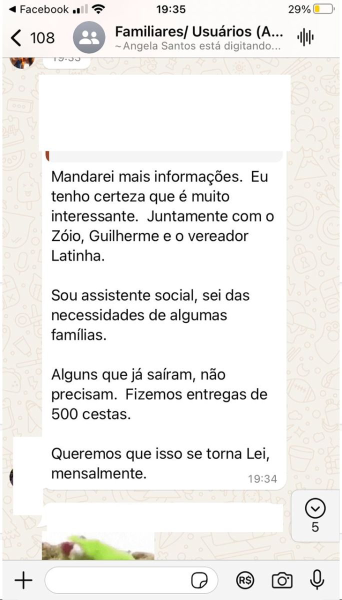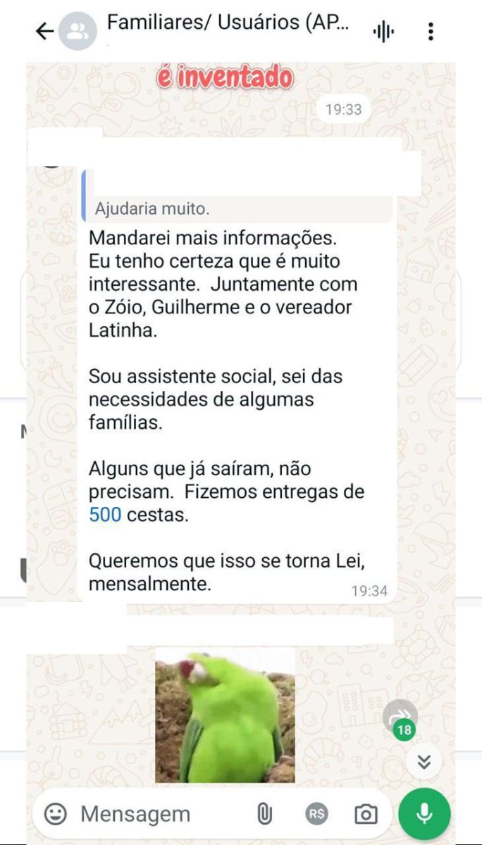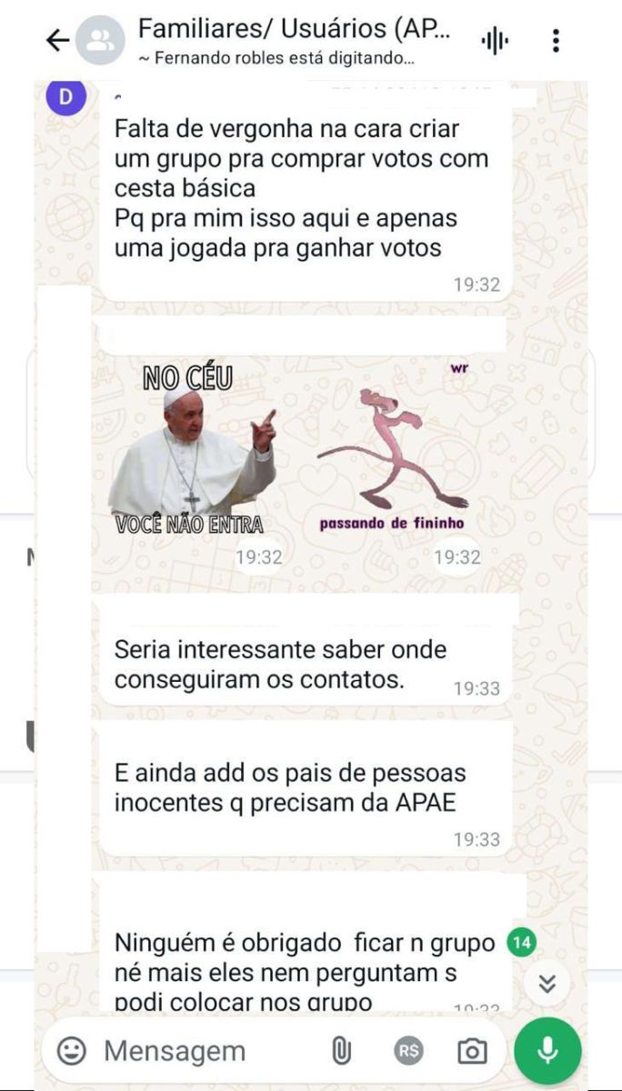 O grupo em questão, que foi criado no WhatsApp, contava com 493 membros e era administrado por um perfil identificado como Fernando Robles. O nome do grupo era “Familiares/Usuários (APAE), Guilherme Gonçalves, Zóio e Vereador Latinha”. O site Passando a Régua obteve acesso a prints de conversas e áudios de pessoas que reclamavam de terem sido adicionadas ao grupo sem consentimento, sugerindo que a APAE pode estar sendo usada para fins eleitoreiros.