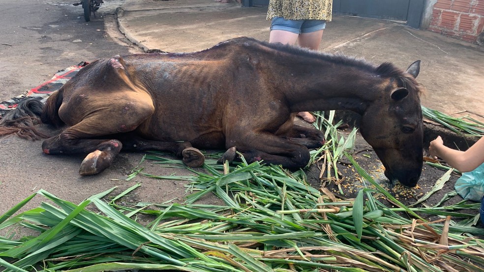 Segundo os moradores, o animal foi encontrado na Rua José Robles Agrela, com a João Francisco de Paula deitado no asfalto, magro e cheio de feridas. Duas mulheres prestaram atendimentos, forneceram água e também capim ao cavalo até a chegada da Prefeitura de Ourinhos.