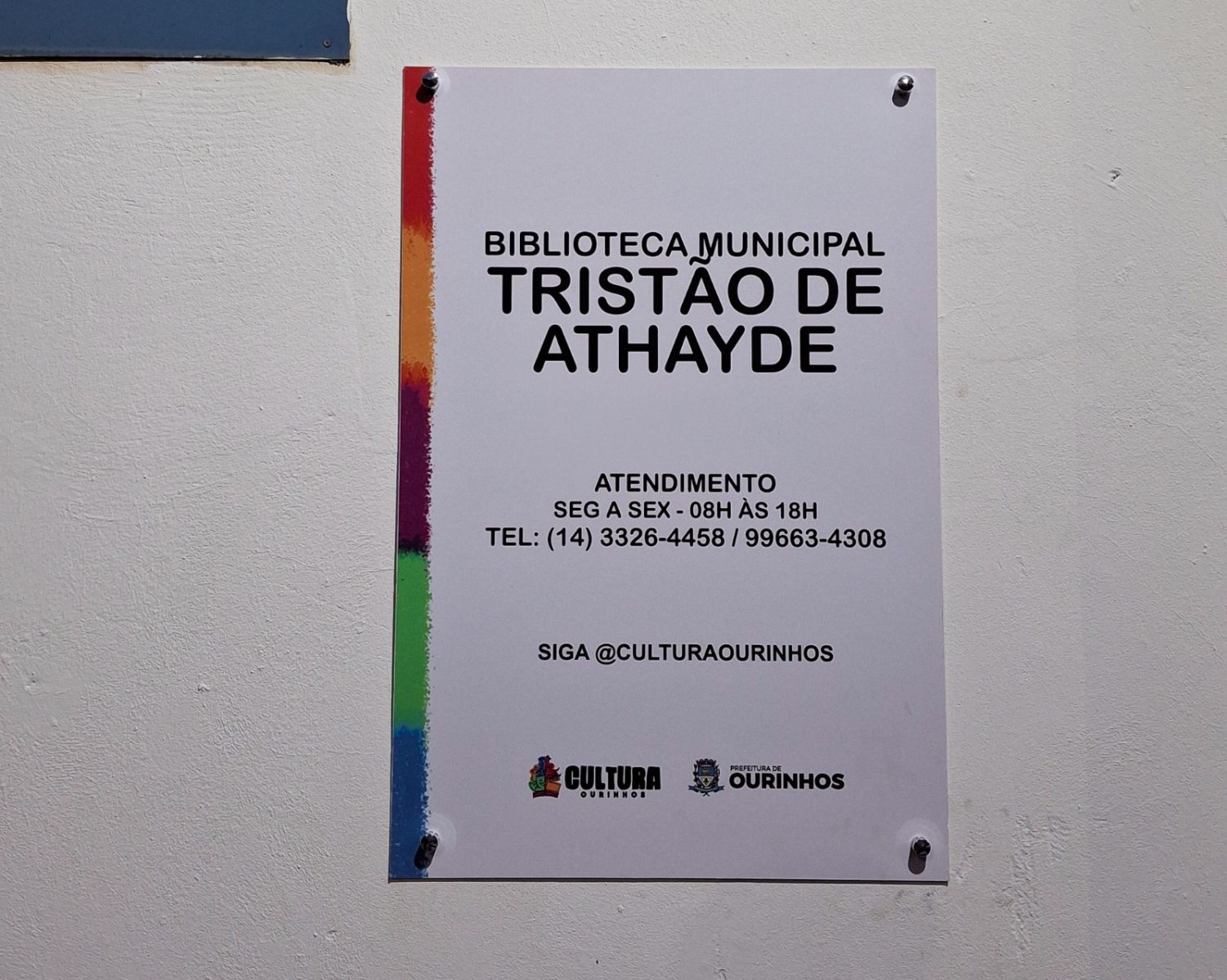 A Prefeitura de Ourinhos, por meio da Secretaria Municipal de Cultura, reinaugurou no fim da tarde desta terça-feira, 19, a Biblioteca Municipal Tristão de Athayde, agora localizada na Rua Henrique Tocalino, nº 95, na região central. O espaço da antiga estação ferroviária, que estava ocioso, foi cedido pela concessionária Rumo, proporcionando que o local volte a ter movimentação.