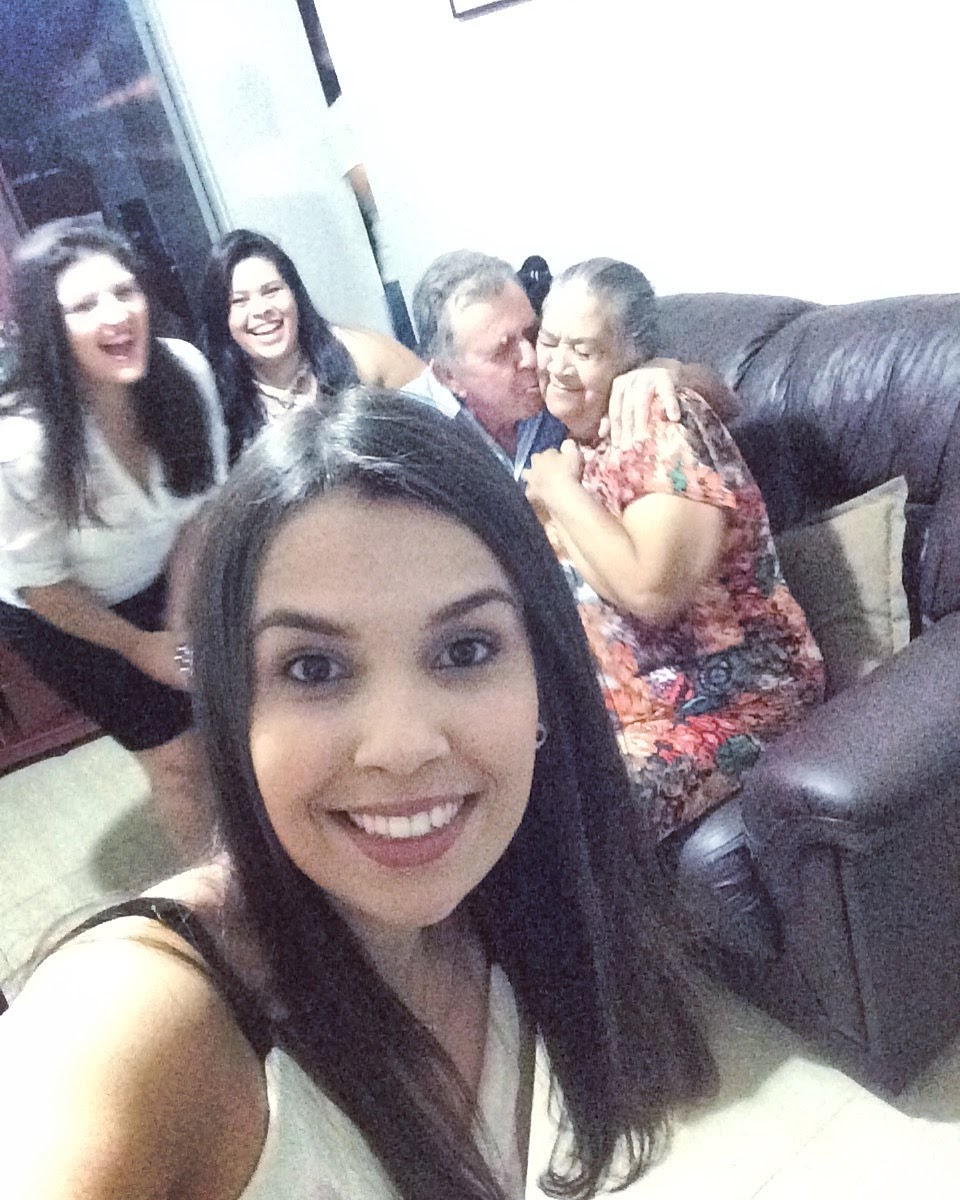 Nelson ao fundo muito alegre com sua esposa e netas (Foto: Arquivo Pessoal)