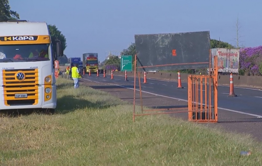 A concessionária que administra a rodovia começou os trabalhos na manhã desta terça, com o objetivo de recuperar parte da pavimentação de duas das três pistas no quilômetro 317, sentido leste.