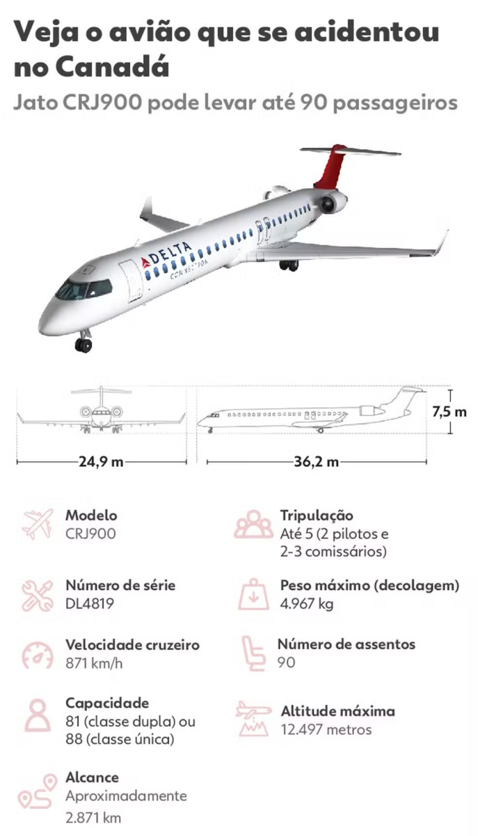 O voo DL4819 partiu de Minneapolis, nos Estados Unidos, transportando 80 pessoas a bordo, sendo 76 passageiros e quatro tripulantes. Todos foram evacuados em segurança. As três vítimas mais graves, entre elas uma criança e um casal de cerca de 60 anos, foram retiradas do local de helicóptero e encaminhadas para hospitais da região, segundo informou a ministra dos Transportes do Canadá, Anita Anand.