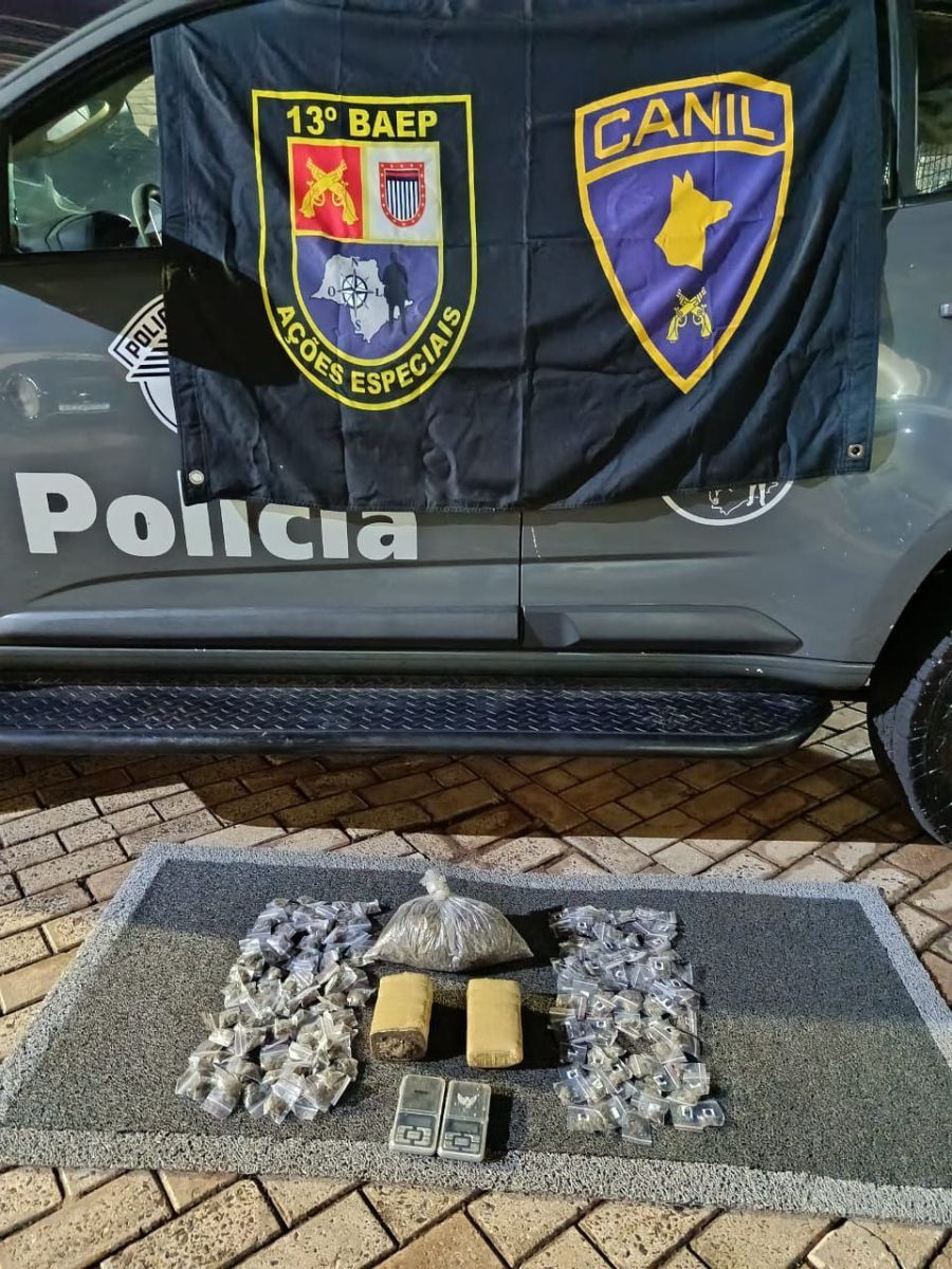Ao todo, foram apreendidos 1,323 kg de maconha. Os objetos foram encaminhados à Central de Polícia Judiciária (CPJ) de Ourinhos para os procedimentos legais cabíveis.
