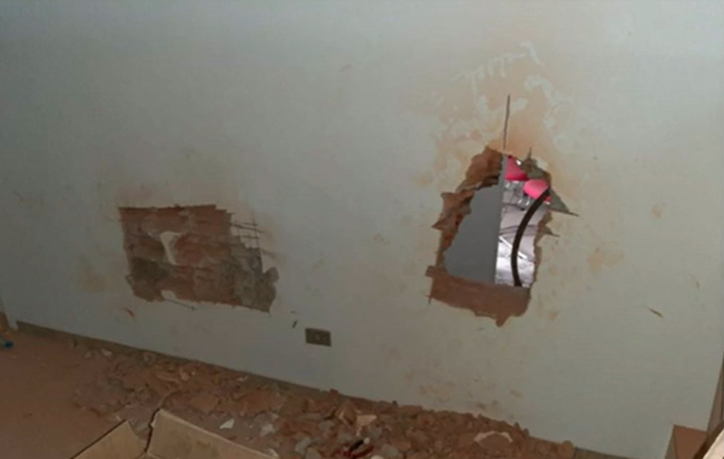 O buraco aberto pelos bandidos tem a largura de 45 centímetros (Foto: Reprodução/RPC)