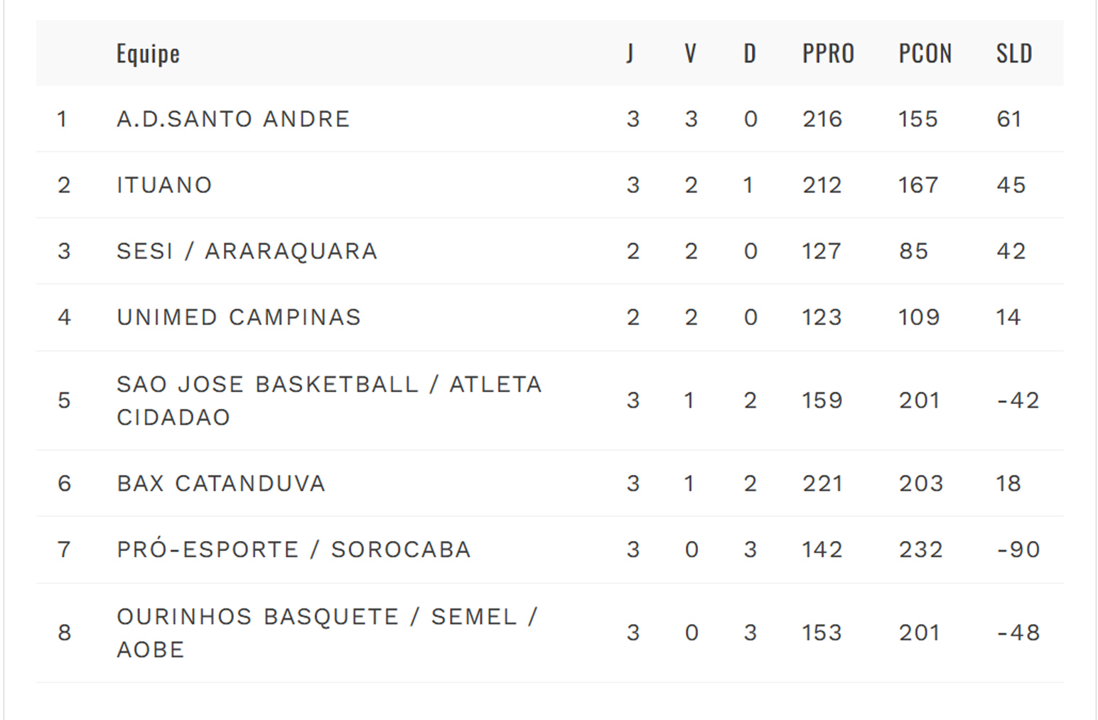 Na classificação geral, o São José Basketball/Atleta Cidadão ocupa a quinta colocação, com uma vitória e duas derrotas, enquanto o Basquete Ourinhos/Semel/AOBE ainda busca sua primeira vitória na competição.