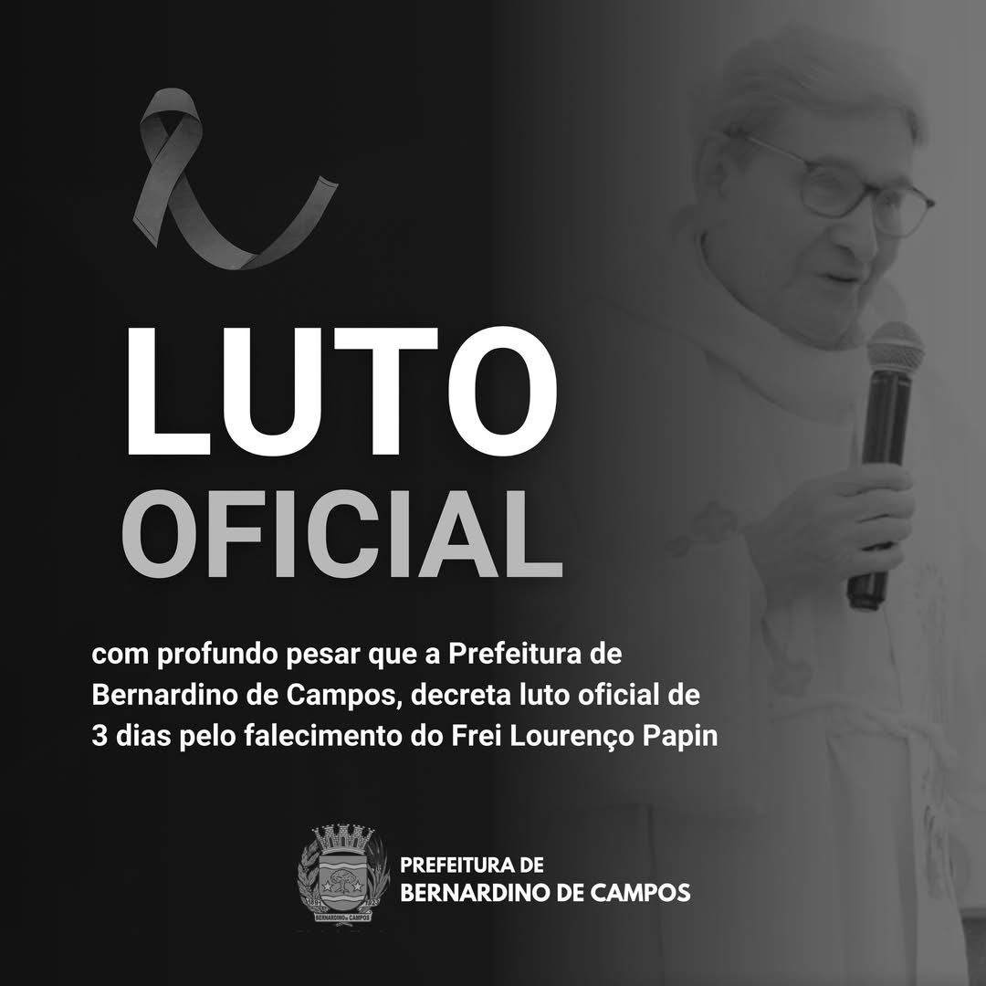 A Prefeitura de Bernardino de Campos decretou luto oficial de três dias pela morte de Frei Lourenço Maria Papin, conhecido carinhosamente como Frei Papin. O religioso faleceu no último domingo, 23 de fevereiro de 2025, em Goiânia (GO), aos 92 anos.