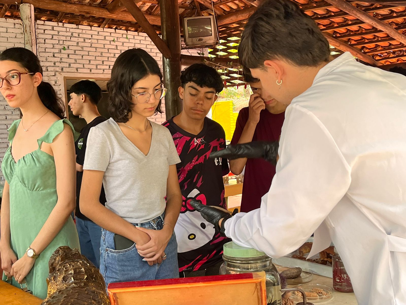 Os visitantes também tiveram a oportunidade de conhecer mais sobre animais marinhos, através de exibições educativas que destacaram a importância dos oceanos para o equilíbrio ecológico. O curso de Ciências Biológicas também trouxe para o evento um espaço dedicado à hematologia e parasitologia, com informações sobre o funcionamento do sangue e a ação de vermes, temas que despertaram grande curiosidade do público.