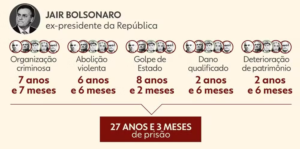 Em setembro, por 4 votos a 1, a Primeira Turma do STF condenou Bolsonaro por cinco crimes:
