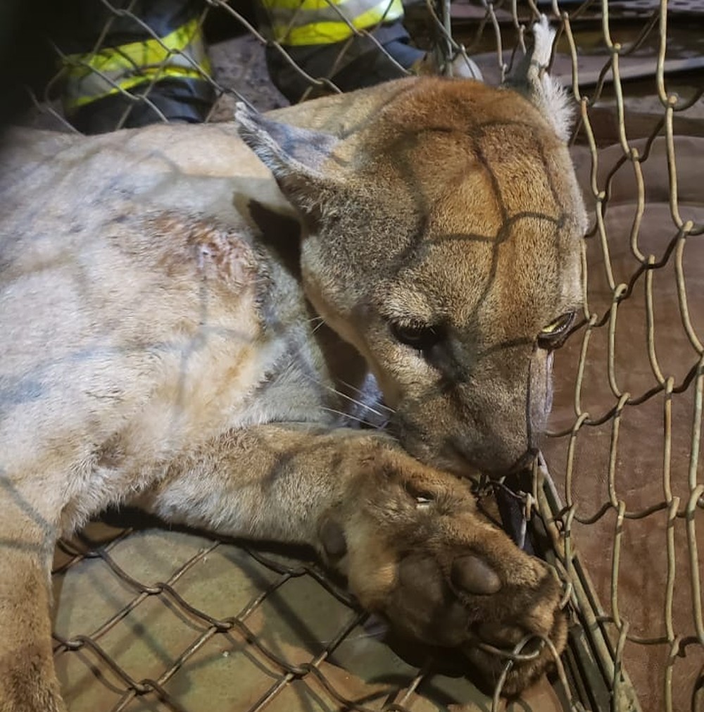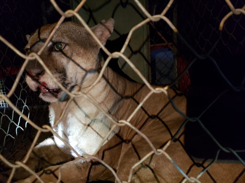 Uma onça parda foi capturada pelo Corpo de Bombeiros de Ourinhos, na noite desta segunda-feira, 20, em Chavantes (veja o vídeo abaixo).