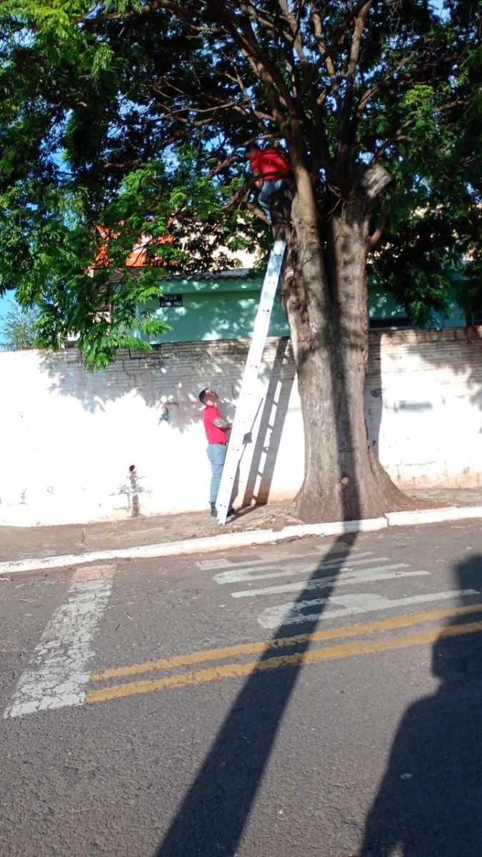 Na manhã desta quarta-feira (27), o Corpo de Bombeiros de Ourinhos realizou o resgate de um filhote de gato que estava preso no topo de uma árvore há três dias. A ocorrência foi registrada na Avenida Jacinto Ferreira de Sá, no cruzamento com a Rua Sebastião Miranda, na Vila Sandano.