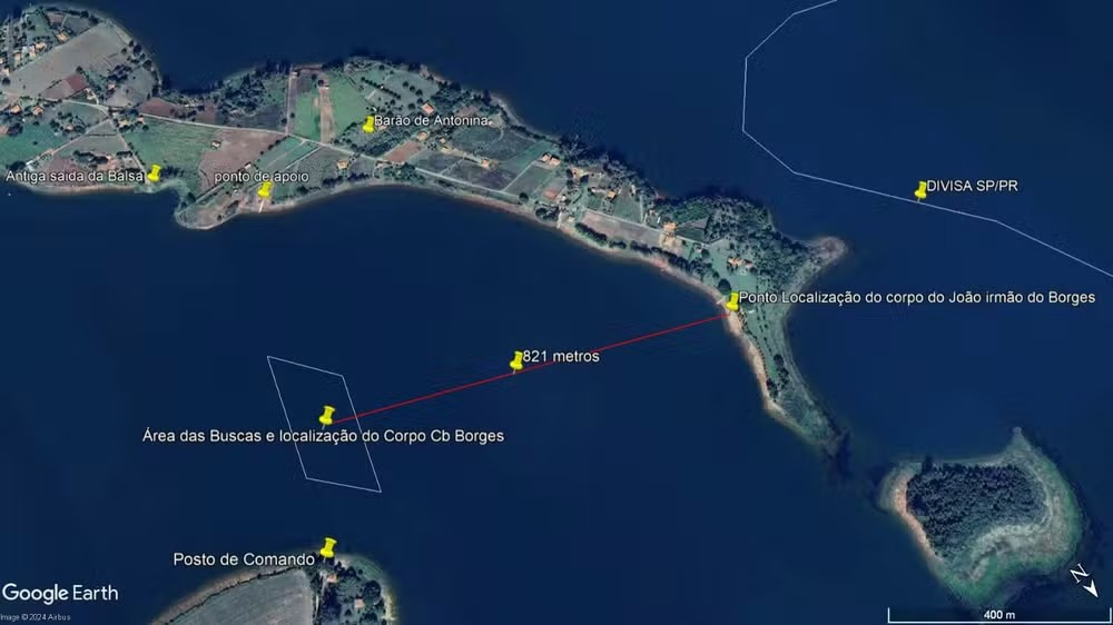 O corpo do motorista foi localizado cerca de 800 metros do naufrágio do barco — Foto: Divulgação/Polícia Ambiental de Avaré