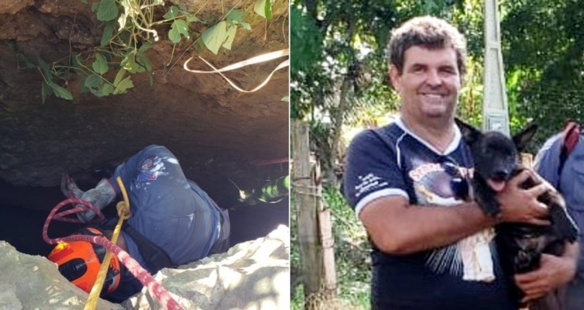 Nesta quinta-feira, o homem ouviu os latidos vindo de uma fenda no quintal da chácara onde mora e, como suspeitou que fossem da companheira, chamada Taigra, pediu ajuda aos bombeiros.