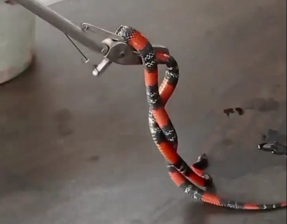 Já no local, os bombeiros descobriram na guia da calçada uma segunda cobra da mesma espécie, conhecida como coral não-peçonhenta.
