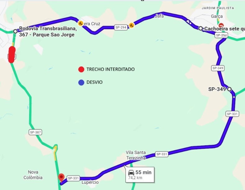 Para manter a ligação entre Ourinhos e Marília, foram definidos desvios operacionais. No sentido Ourinhos-Marília, os motoristas devem sair no km 280, no acesso a Lupércio, seguindo pela SP-331 e depois pela SP-294. Já no sentido contrário, Marília-Ourinhos, o desvio ocorre no km 257, no trecho urbano de Marília, com direcionamento pela SP-294 e, posteriormente, pela SP-331, retornando à BR-153 após o ponto interditado.