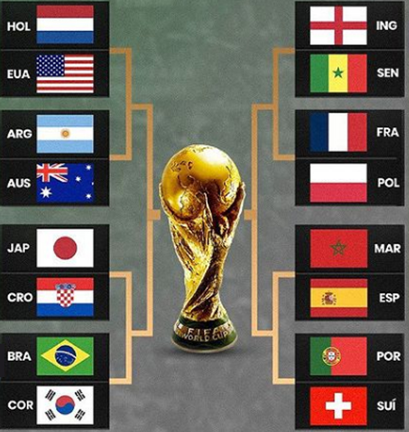 Confira como ficaram todos os confrontos das oitavas de final da Copa do Mundo do Catar.
