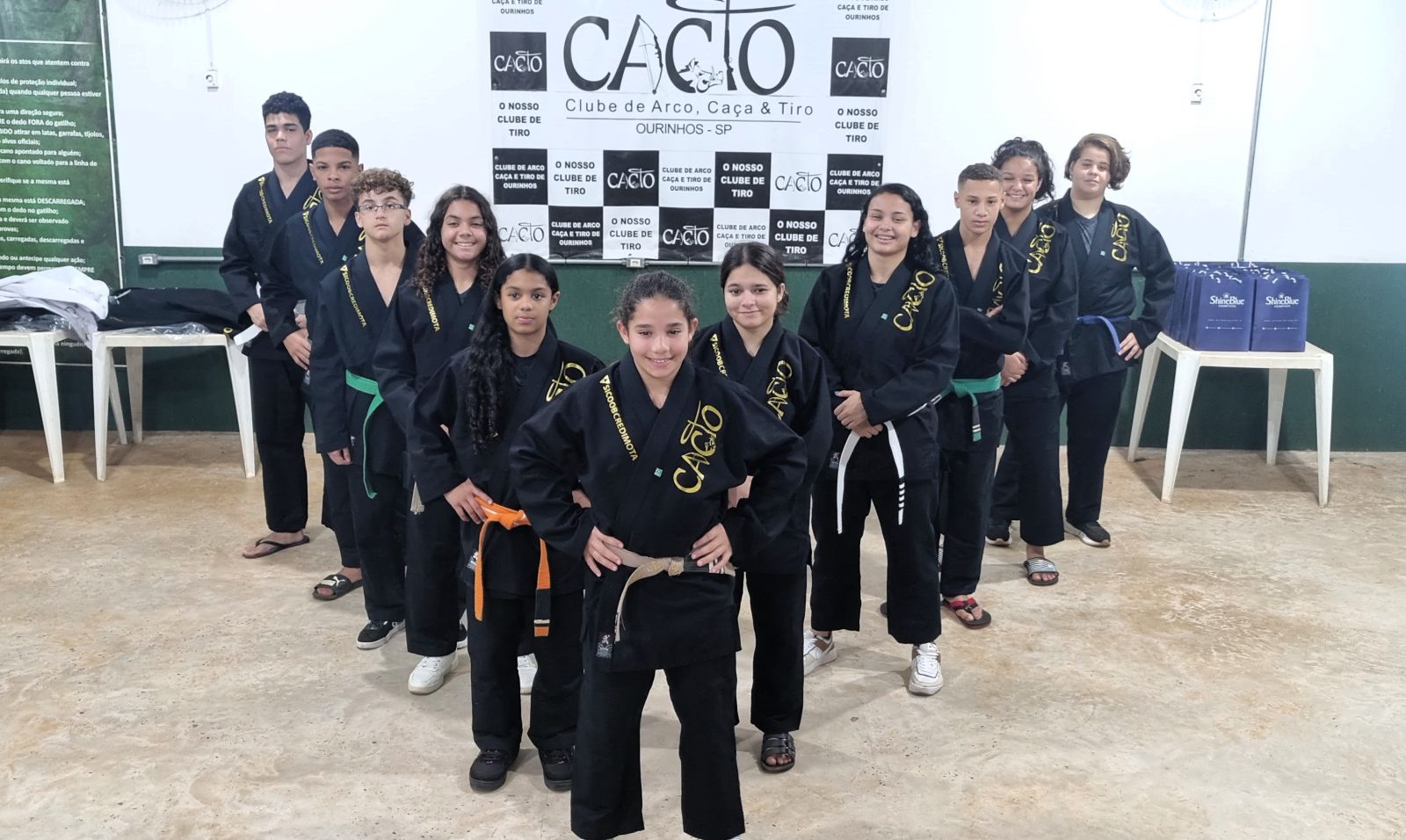 O Clube de Arco, Caça e Tiro de Ourinhos (CACTO) realizou na noite desta sexta-feira, 6, a entrega de kimonos personalizados aos atletas da sua equipe de Jiu-jitsu. Ao todo, foram confeccionados 17 kimonos, estampando as marcas do clube e de seus patrocinadores: SICOOB CREDIMOTA, Solar Soluções Engenharia, LPS-Lucas Personal Studio e Relojoaria Tesouro. A entrega aconteceu em uma cerimônia que contou com a presença dos diretores do CACTO, Fernando Ferrari, Capitão Lucas, do mestre Douglas, treinador da equipe, e de representantes dos patrocinadores.