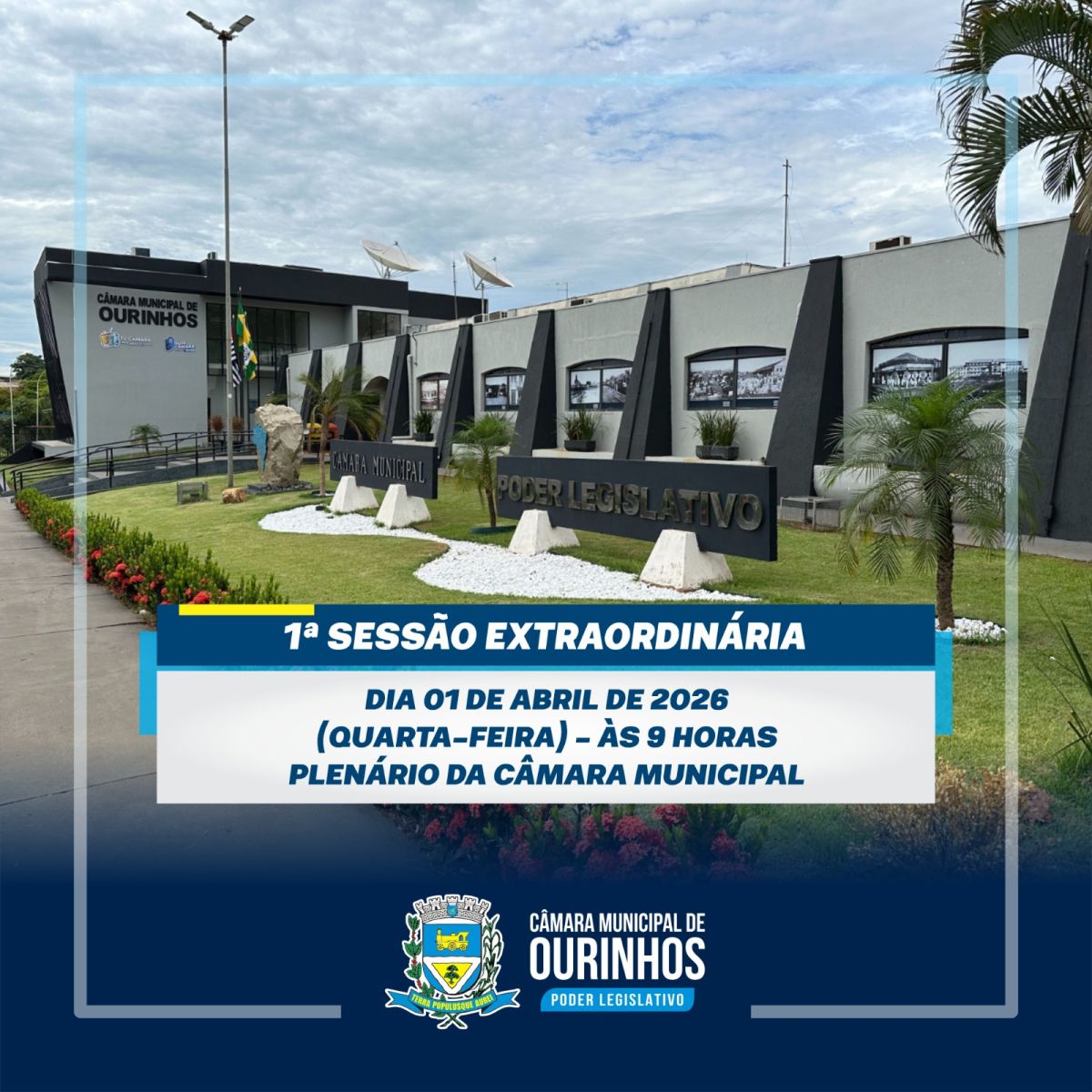 A Câmara Municipal de Ourinhos realiza nesta quarta-feira (1º de abril), às 9h, a 1ª Sessão Extraordinária de 2026. Na Ordem do Dia, os vereadores irão analisar o Projeto de Lei Complementar nº 09/2026, que propõe alterações na Lei Complementar nº 475/2006, responsável pela reestruturação do Plano de Cargos, Carreiras e Vencimentos da Prefeitura de Ourinhos.