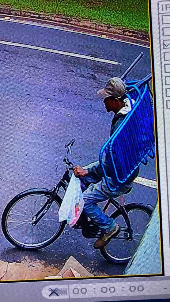 As imagens capturadas mostram que, por volta das 14h09, o suspeito chegou ao local montado em uma bicicleta. Com calma e discrição, ele pegou as duas cadeiras que estavam na área externa da residência e fugiu rapidamente utilizando o mesmo meio de transporte.