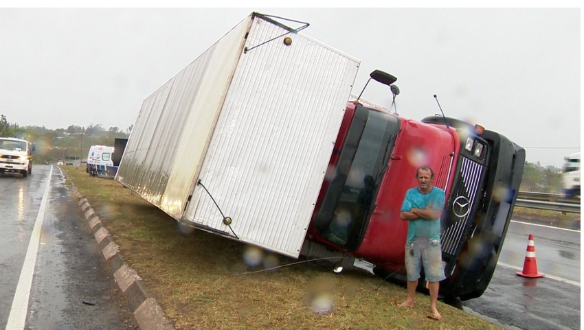 Um caminhoneiro e o seu companheiro de trabalho tiveram um grande susto, na tarde desta sexta-feira, 1º, após o caminhão-baú que estavam tombar, com a força do vento na rodovia Raposo Tavares (SP-270), em Presidente Prudente (194 km de Ourinhos). Segundo a Coordenadoria de Proteção e Defesa Civil, houve rajadas de 103km/h.