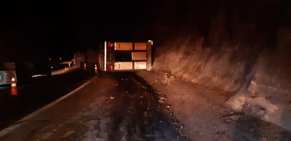 Já a concessionária que administra a rodovia providenciou um guindaste para erguer o caminhão e retirá-lo do local.