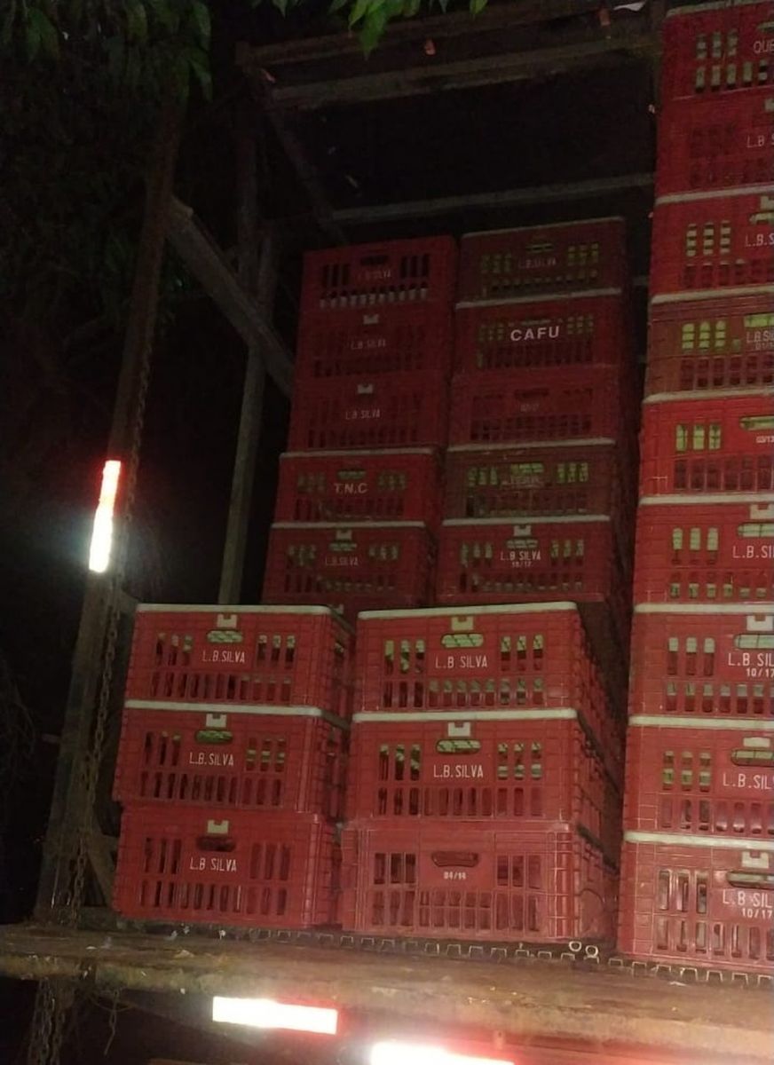 Os policiai flagraram quatro indivíduos recolocando caixas plásticas nos caminhões. Com a chegada da Polícia Militar, um deles fugiu. Um dos caminhões estava carregado de caixas plásticas com as galinhas e na carroceria também havia cerca de 40 caixas jogadas no chão, todas vazias.