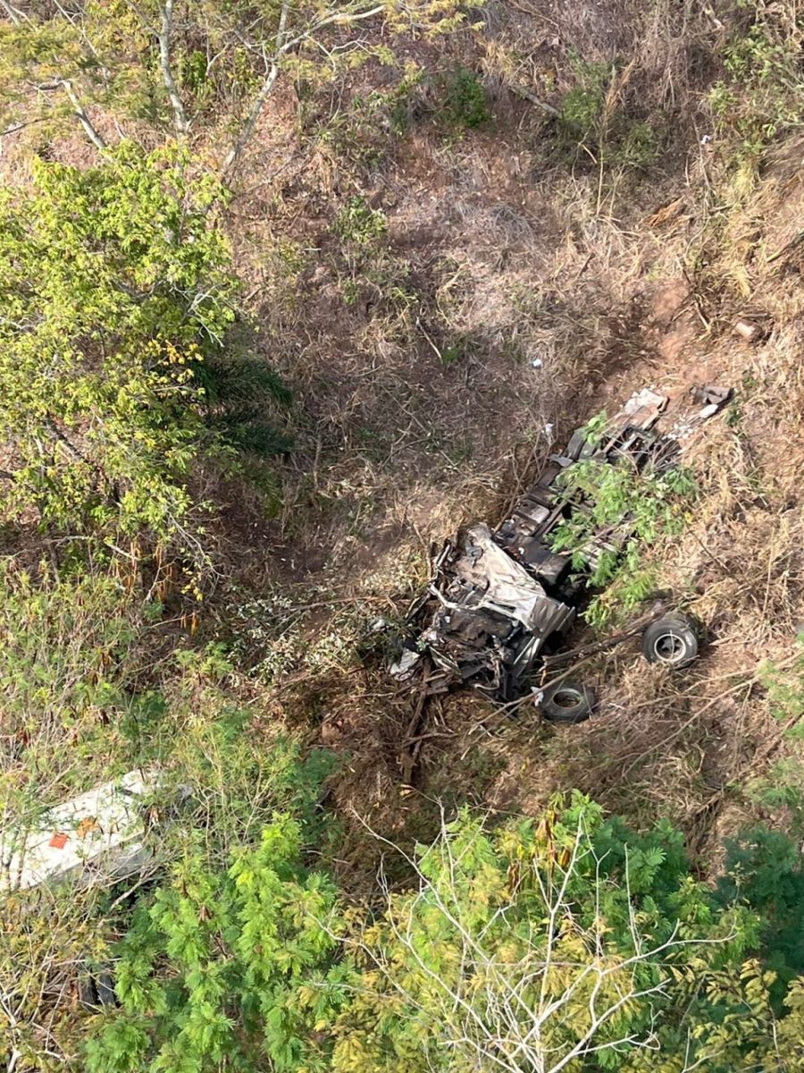 Caminhão carregado com gás cai em ribanceira às margens da SP-294 em Gália — Foto: Artesp/Reprodução