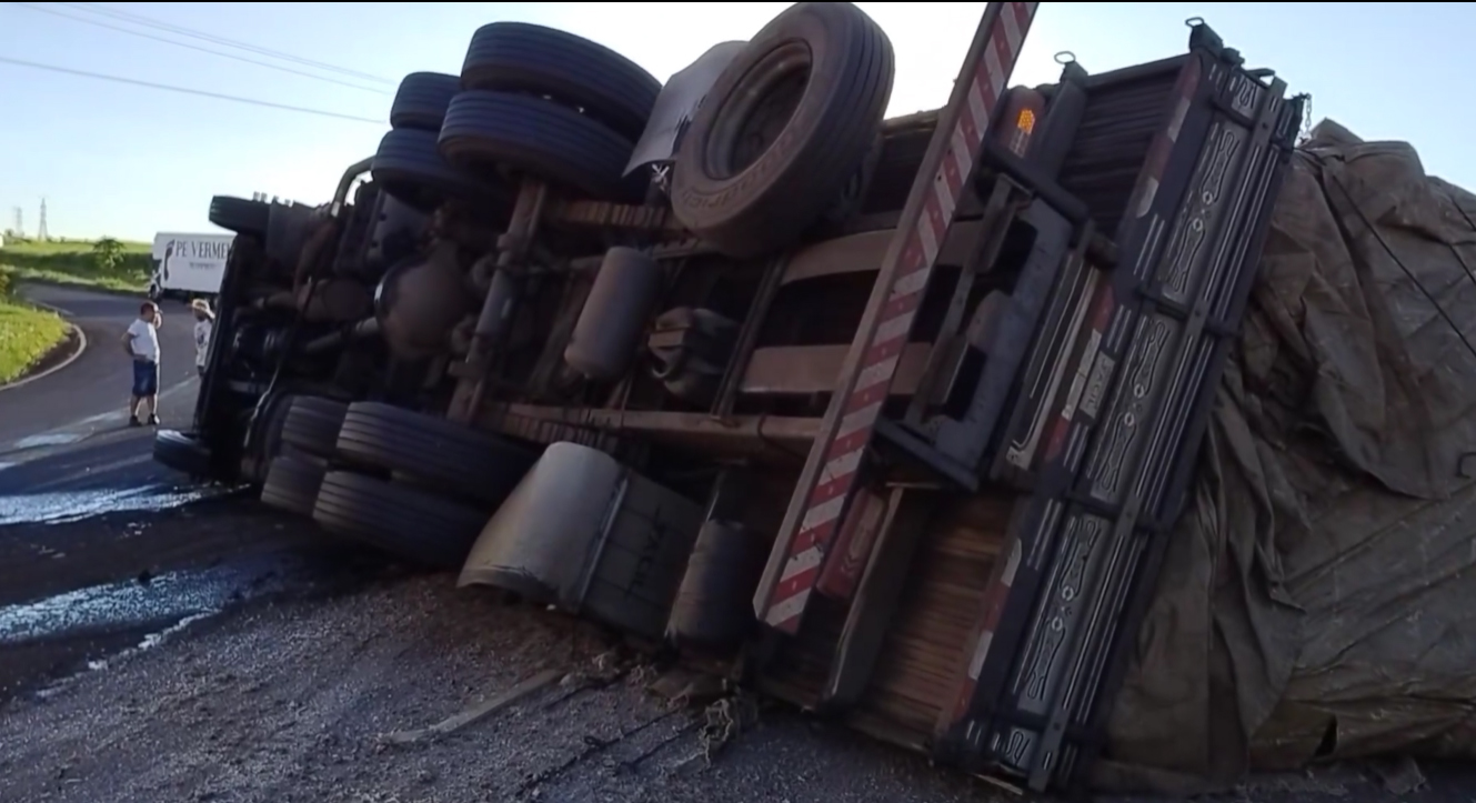 Na tarde desta sexta-feira (2), um caminhão VM/Volvo, de cor cinza, carregado de caixas, tombou na famosa "Curva do Tombo" em Bandeirantes, no norte do Paraná. O veículo, que seguia no sentido de Andirá a Santa Mariana, virou próximo das 18 horas, interrompendo o tráfego na região por aproximadamente 20 minutos.