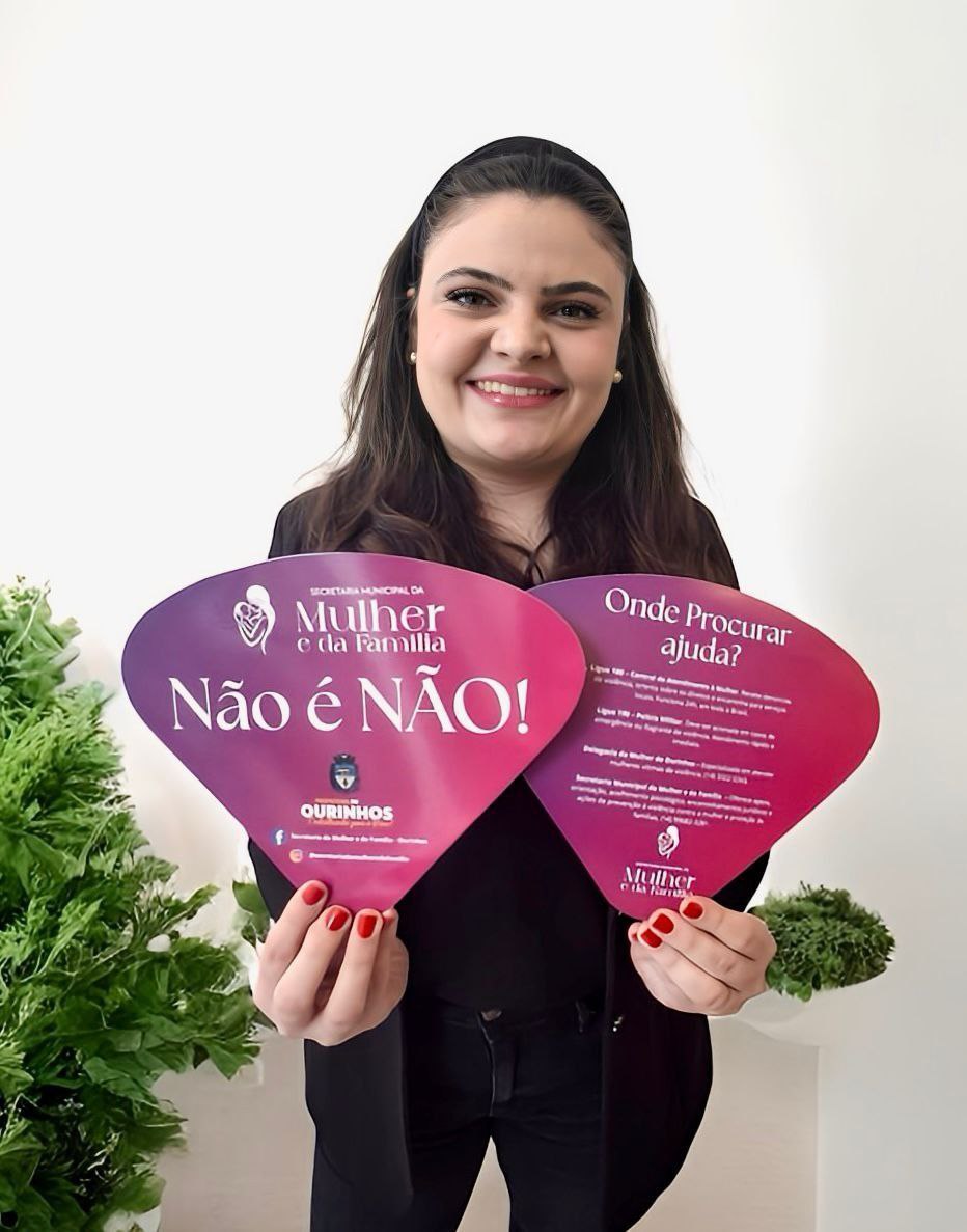 Entre as principais iniciativas está a distribuição de leques com a mensagem “Não é Não”, reforçando a importância do respeito ao consentimento e do enfrentamento ao assédio. No verso dos leques, estão impressos os principais canais de denúncia, como o Disque 180 e os contatos da Delegacia de Defesa da Mulher de Ourinhos, facilitando o acesso rápido à informação.