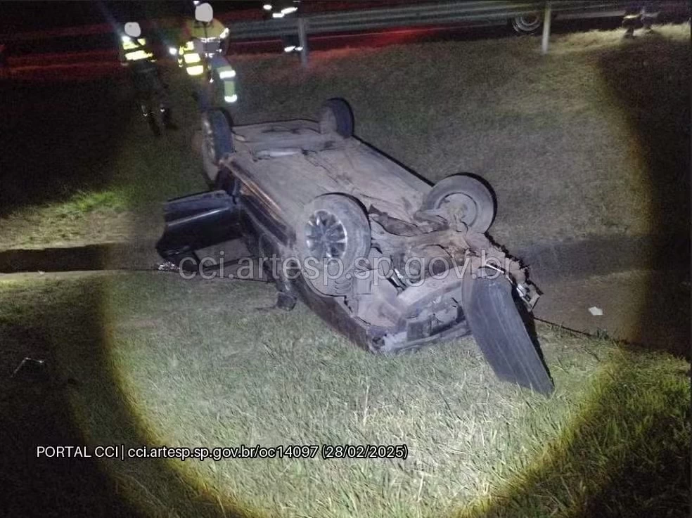 De acordo com a Polícia Rodoviária, o motorista perdeu o controle do veículo, que capotou e ficou parado no canteiro central com as quatro rodas para cima. Os motivos não foram esclarecidos.
