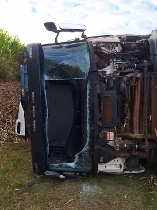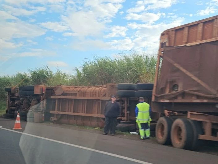 De acordo com as informações iniciais, o caminhão tombou fora da pista, o que evitou a interdição da rodovia. O condutor foi socorrido com ferimentos leves e encaminhado para atendimento médico.