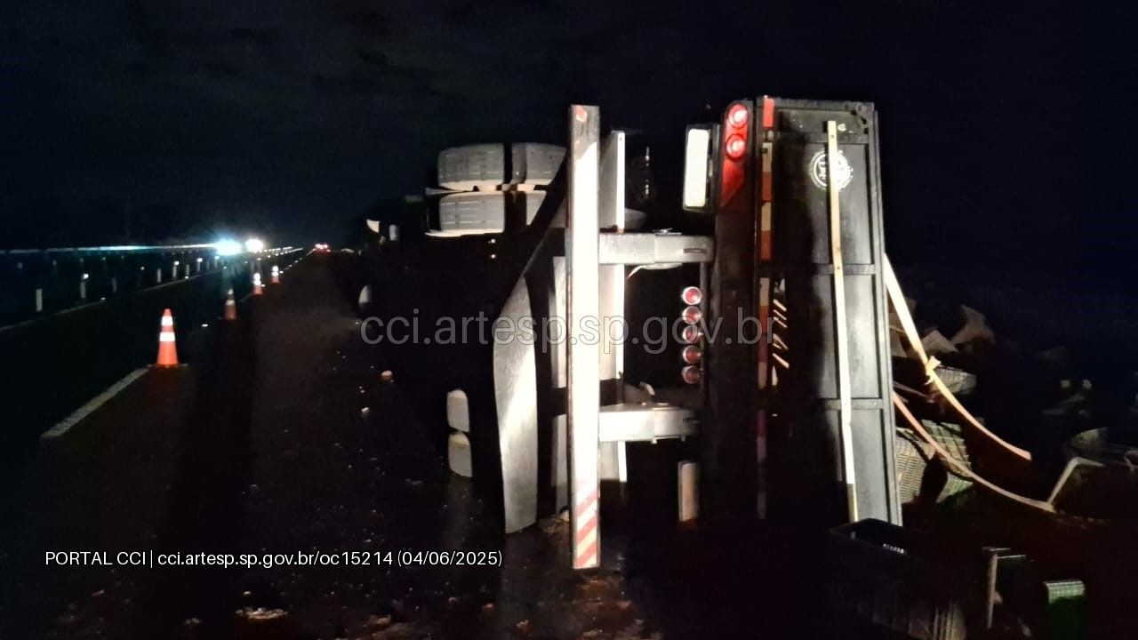 O condutor do caminhão informou que o transbordo da carga será realizado ao longo desta quarta-feira, 4. Não houve registro de congestionamento significativo, mas o tráfego permanece parcialmente comprometido até a liberação completa da via. As causas do acidente serão investigadas.